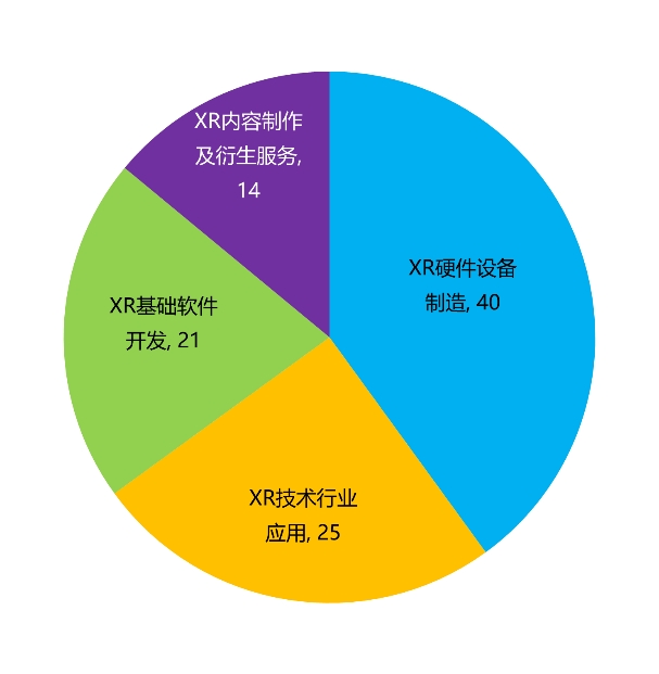 從企業(yè)所屬類別來(lái)看,100家代表性XR企業(yè)中硬件設(shè)備制造業(yè)企業(yè)數(shù)量最多,達(dá)到40家。技術(shù)行業(yè)應(yīng)用企業(yè)數(shù)量位居第二,為25家。基礎(chǔ)軟件開(kāi)發(fā)企業(yè)數(shù)量為21家。內(nèi)容制作及衍生服務(wù)企業(yè)數(shù)量為14家。
