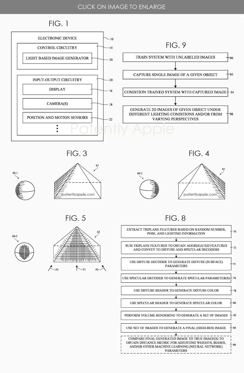 蘋果在其專利背景指出,一些電子設(shè)備可包含用于生成三維物體的真實圖像(例如面部圖像)的系統(tǒng)。三維(3D)生成框架已開發(fā),基于最先進(jìn)的二維卷積神經(jīng)網(wǎng)絡(luò)圖像生成器以生成逼真的人臉圖像;現(xiàn)有3D生成框架對從初始視點捕獲的對象或場景的幾何形狀、外觀和顏色進(jìn)行建模,并能從新視點渲染對象或場景新圖像;然而,現(xiàn)有3D生成框架無法在不同的光照條件下渲染新圖像。