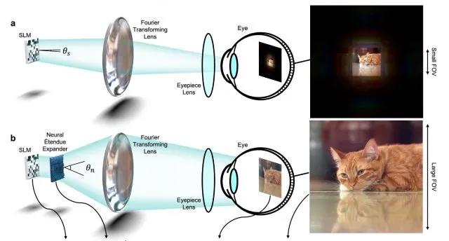 研究人員將該方法稱為“神經(jīng)光學(xué)展量擴(kuò)展”,與現(xiàn)有的不考慮顯示內(nèi)容的簡(jiǎn)單方法相比,這是一種擴(kuò)展光學(xué)展量的“智能”方法。