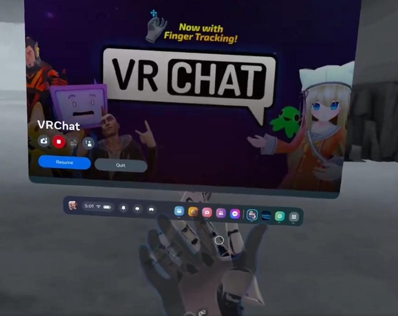 如果用戶使用手部追蹤,則可以通過手勢(shì)激活這些菜單按鈕:手掌朝向自身,手指快速捏合將打開/關(guān)閉的通用菜單(這與短按Oculus/Meta按鈕的效果相同),而長捏會(huì)重新居中(如同長按Oculus/Meta按鈕);而另一只手指短捏即可激活“設(shè)置”按鈕。