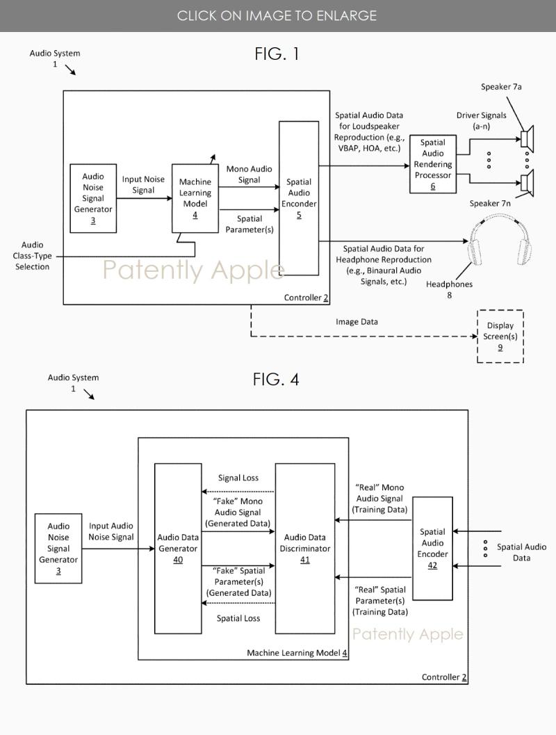 蘋果專利圖1示出了用于生成空間音頻數(shù)據(jù)的音頻系統(tǒng)框圖;圖4示出了用于生成空間音頻數(shù)據(jù)ML模型的音頻系統(tǒng)框圖。