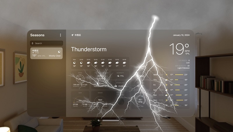 ILLUSION Tech旗下 Vision Pro天氣應用「Seasons」,打破常規(guī),賦予用戶沉浸式的天氣體驗,這符合了當前空間計算應用迸發(fā)的大勢。ILLUSION Tech CEO雷宇田表示,Vision Pro作為手機、PC之外第三種核心計算平臺,目前正處于空間計算爆發(fā)的前夜,行業(yè)發(fā)展的持續(xù)性很強,堅定看好空間計算的未來。