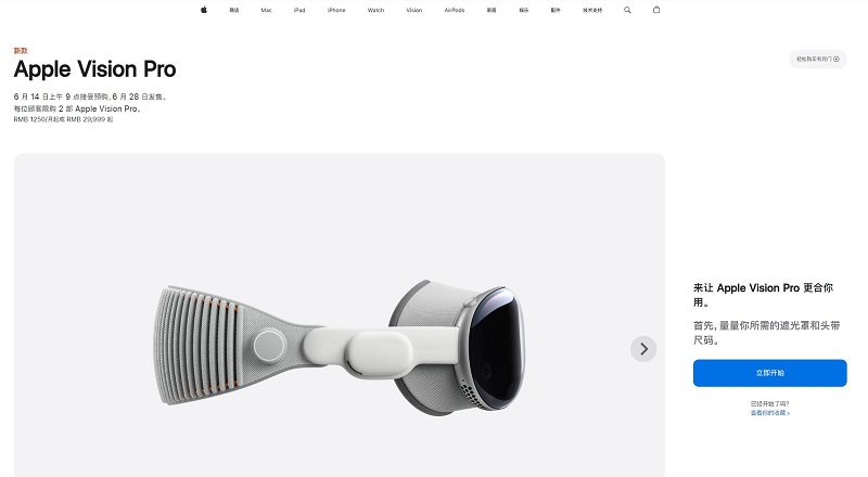 其中在中國(guó)、日本和新加坡三個(gè)國(guó)家,Vision Pro將于6月28日率先上市。6月14日蘋(píng)果的中國(guó)官網(wǎng)將開(kāi)始接受Vision Pro的預(yù)購(gòu)。