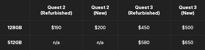 Quest 3新品售價(jià)為128GB 500美元/512GB 650美元,因此根據(jù)型號(hào)不同,翻新型號(hào)代表著50美元/70美元的折扣。
