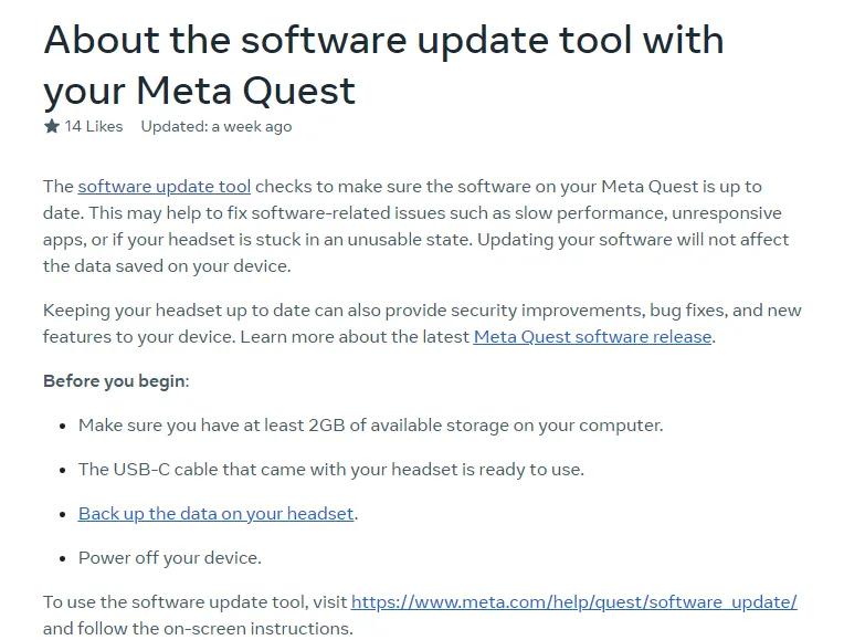 Meta正在準備一個工具,使Quest用戶能通過PC Tether連接強制進行軟件更新。