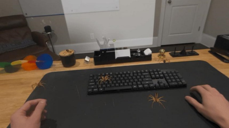Pickren解釋?zhuān)骸叭绻芎φ咧皇窃赩ision Pro中查看我們的網(wǎng)站,我們就能立即讓對(duì)方的房間充滿(mǎn)數(shù)百只爬行的蜘蛛和尖叫的蝙蝠?!保谊P(guān)閉Safari并不能阻止虛擬蜘蛛的侵?jǐn)_,而擺脫它們的唯一方法是繞著房間走一圈,用手敲擊每一只蜘蛛。