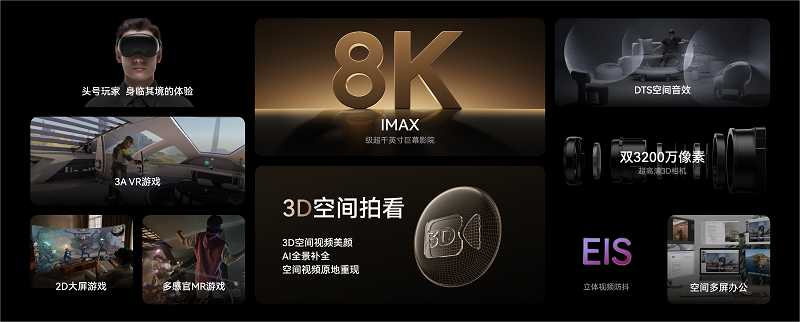 尤為令人驚喜的是,玩出夢(mèng)想MR搭載雙3200萬(wàn)像素超高清3D相機(jī),掀起一場(chǎng)全新空間影像革命。>80°超廣錄制視場(chǎng)角,1T超大內(nèi)存,自由記錄天地萬(wàn)象。EIS立體視頻防抖優(yōu)化,讓畫(huà)面回看更穩(wěn)定,穩(wěn)穩(wěn)捕捉高光時(shí)刻。智能3D空間視頻美顏,讓美更自然。支持空間視頻與VR180兩種格式3D視頻拍攝,更有業(yè)內(nèi)首創(chuàng)3D全景照片拍攝,配備AI專(zhuān)屬全景圖片補(bǔ)全功能,讓每一支視頻和每一張照片均可獲得強(qiáng)烈的臨境感。