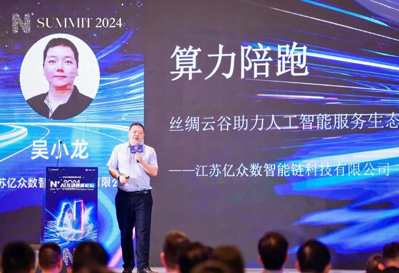江蘇億眾數(shù)智能鏈科技有限公司董事吳小龍作 《算力陪跑,絲綢云谷助力人工智能服務(wù)生態(tài)圈》主題演講。