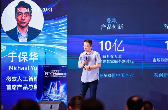 微軟人工智能首席產(chǎn)品總監(jiān)于保華作《AI視頻虛擬廣告平臺(tái)助力行業(yè)創(chuàng)新》主題演講。