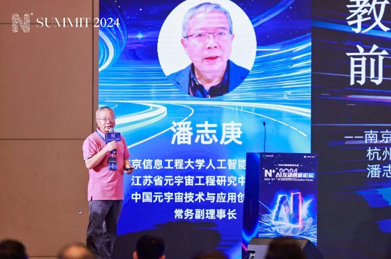 南京信息工程大學(xué)人工智能學(xué)院院長(zhǎng)、江蘇省元宇宙工程研究中心主任、中國(guó)元宇宙技術(shù)與應(yīng)用創(chuàng)新平臺(tái)常務(wù)副理事長(zhǎng)潘志庚作《元宇宙與AI賦能教育》主題演講。