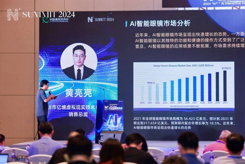 深圳市億境虛擬現(xiàn)實(shí)技術(shù)有限公司銷售總監(jiān)黃亮亮作《AI時(shí)代消費(fèi)類智能眼鏡的新機(jī)遇》主題演講。