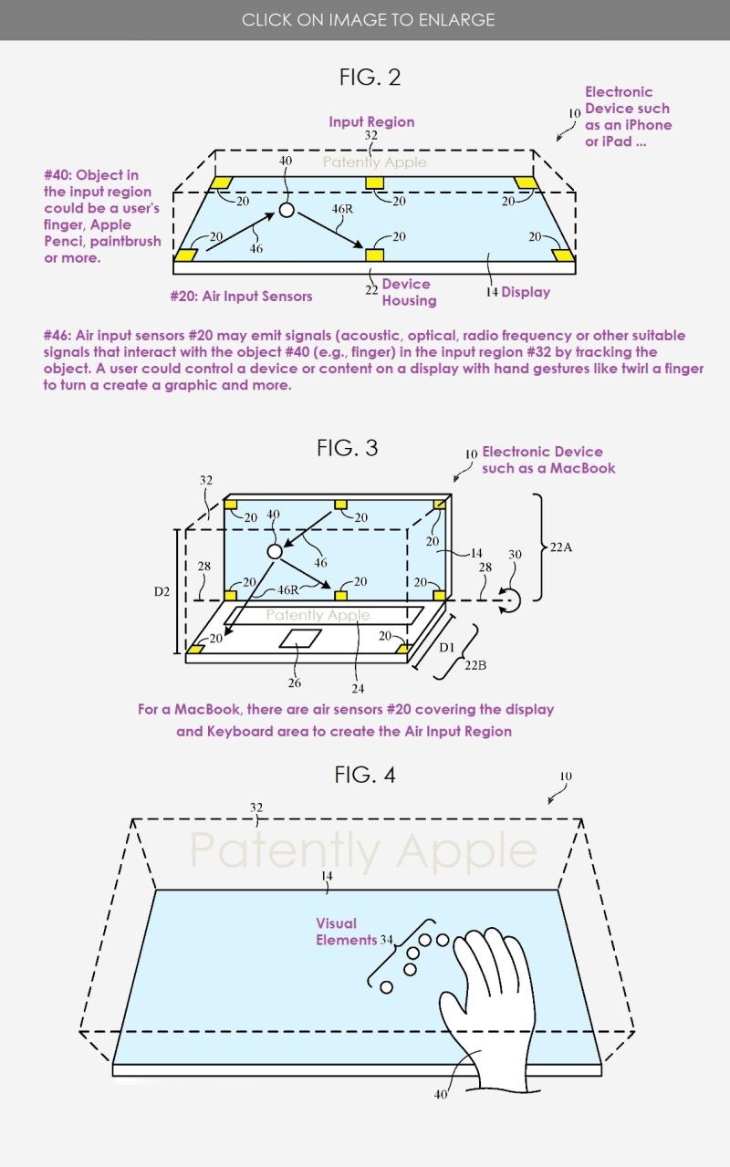 為了增強(qiáng)用戶操作電子設(shè)備,蘋果發(fā)明涵蓋了空中輸入傳感器電子設(shè)備??罩休斎雮鞲衅骺梢詸z測外部物體的存在,例如用戶的手指、觸控筆或其他物體,而無需物體與空中輸入傳感器直接接觸。