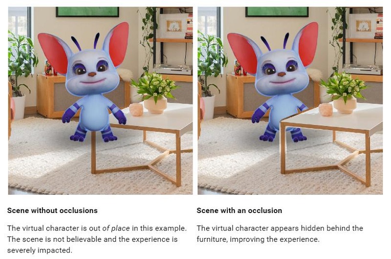 我試用了v67 Depth API,確認(rèn)該版本提供了更高質(zhì)量的遮擋,盡管仍然非常粗糙。但v67還提供了另一個(gè)比原始質(zhì)量改進(jìn)更重要的秘訣。