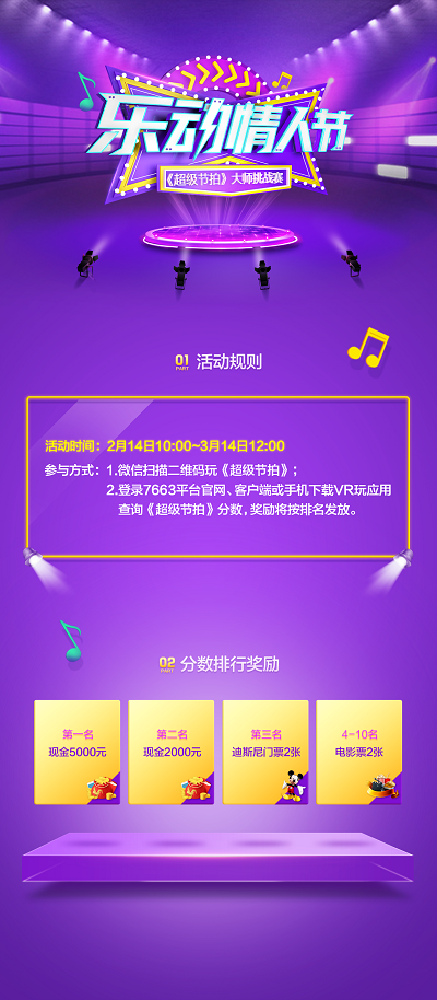 心隨音動(dòng),挑戰(zhàn)極限,除了這款好玩的VR游戲之外,7663平臺(tái)還為參加本次積分賽的玩家準(zhǔn)備了萬(wàn)元現(xiàn)金大獎(jiǎng)以及夢(mèng)幻迪斯尼樂(lè)園門(mén)票和電影票,在這情意濃濃的節(jié)日里,用自己的精湛技術(shù)贏取獎(jiǎng)勵(lì)送給TA,是不是別有一番浪漫呢?