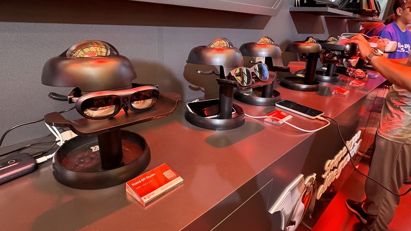 雷鳥展示了一體式AR眼鏡雷鳥X2,XREAL展示了剛剛發(fā)布的Beam Pro以及Air 2 Pro AR眼鏡,Rokid展示的是Rokid AR Studio計算單元+眼鏡套裝。