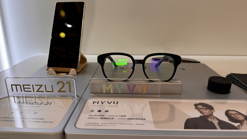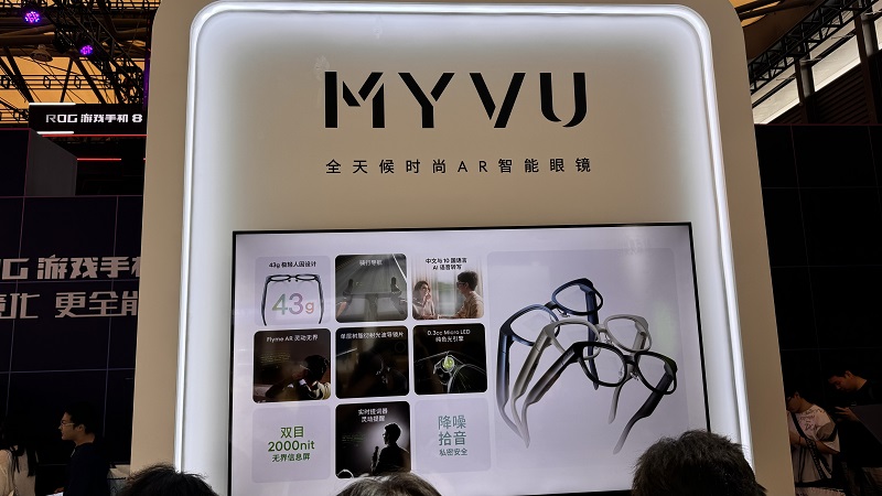 而在高通展區(qū)外,星際魅族的展區(qū)則展示了去年發(fā)布的MYUV智能眼鏡標(biāo)準(zhǔn)版。想要體驗這款產(chǎn)品的人也是排成了長隊,筆者在上手前大約等待了20-30分鐘的時間。