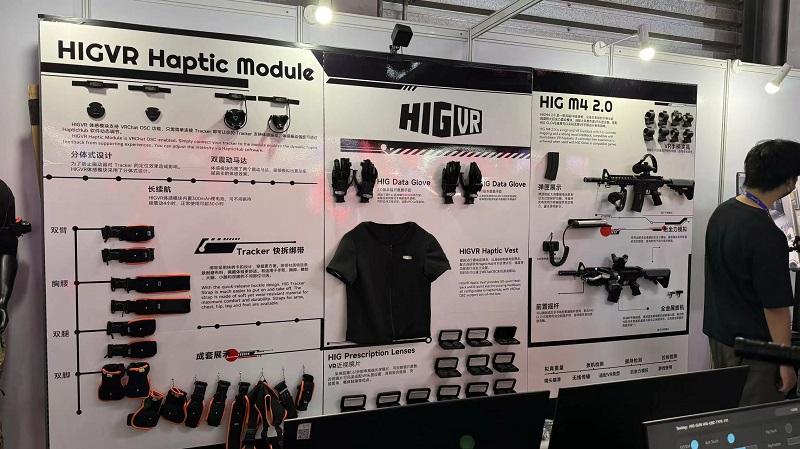 HIG VR展示了數(shù)量眾多的外設(shè),包括了智能手套、VR手柄的槍托支架以及各種適配VR頭顯的體感槍。