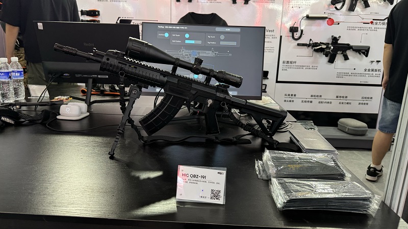 擺在最顯眼的位置的,是型號為「QBZ-191」的體感槍械,外觀十分逼真,主要面向一些特殊的B端客戶推出。