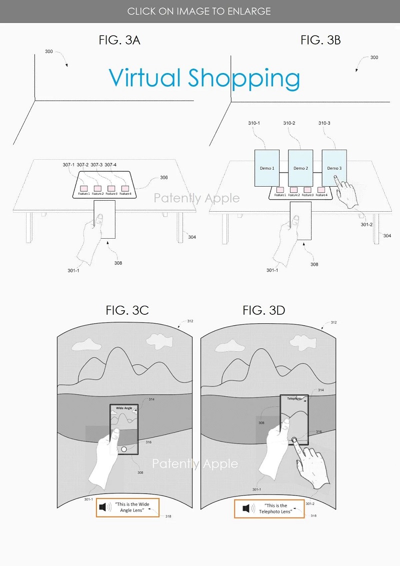 該專利還可以通過增強現(xiàn)實技術(shù)在客廳中展示產(chǎn)品,方便你感受HomePod、Apple TV和iMac等非便攜式產(chǎn)品的尺寸。