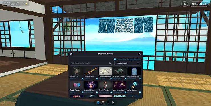 VIVERSE Create v1.0提供兩種方式創(chuàng)建虛擬空間:第一種方式,虛擬空間內(nèi)置無需編程創(chuàng)建功能,在現(xiàn)有空間場景中上傳3D模型或媒體文件進行裝飾即可完成創(chuàng)建。同時虛擬空間與Sketchfab資源庫無縫集成,讓用戶無需3D專業(yè)知識即可使用數(shù)百萬個模型。 此外,還提供對VROID VRM格式的原生支持,創(chuàng)作者能夠導入和使用他們的現(xiàn)有模型。第二種方式是使 用 PlayCanvas,這是一個先進的游戲引擎風格的構建工具,專業(yè)創(chuàng)作者可自主創(chuàng)建空間場景, 并可增加更具交互性的空間體驗和小游戲, 使用瀏覽器即可在各類設備上體驗。創(chuàng)建完成后可將虛擬空間無縫部署到VIVERSE 。此功能將于今年內(nèi)在中國VIVERSE官網(wǎng)更新。