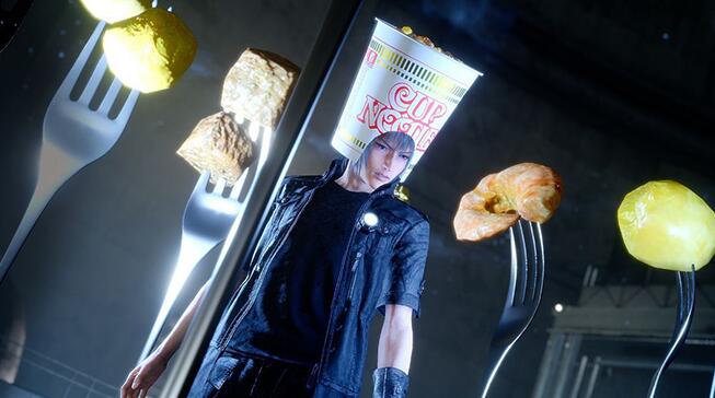 諾克提斯王子頭頂著一桶杯面,畫面異常蠢萌搞笑。而現(xiàn)在,畫面中出現(xiàn)的諾克提斯的這頂“頭盔”真的有可能在游戲中出現(xiàn)了!據(jù)了解購買“最終幻想杯面”限定版的玩家將會獲得一個福利下載碼,可用來解鎖游戲內(nèi)主角諾克提斯的這頂搞笑頭盔。