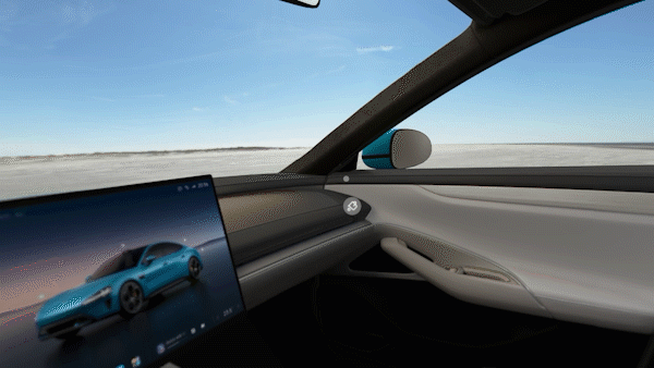 最上方的交互按鈕可以展示小米SU7在行駛時的空氣流動軌跡,也能直觀的呈現(xiàn)輪轂在車輛運動時的外觀。