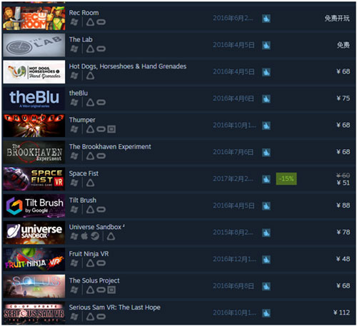 游戲一經(jīng)上架,當(dāng)日便取得STEAM VR頻道熱銷榜第一的優(yōu)秀成績,成為Steam 同時段熱門VR游戲排行榜第18名,成功超越水果忍者VR(Fruit Ninja VR)、音盾(Audioshield)、HordeZ、QuiVr等熱門VR游戲排名。