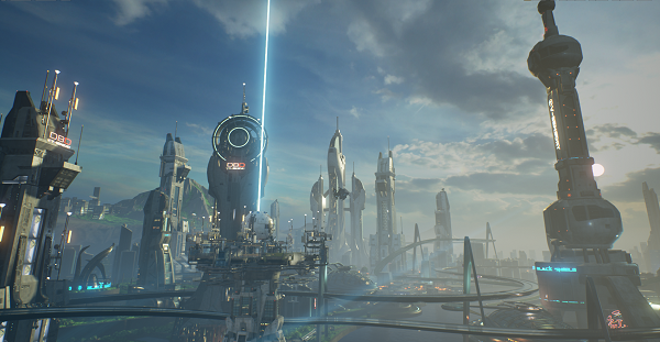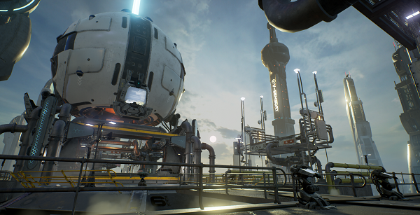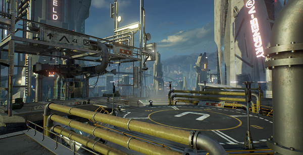 從截圖上看,無論是大尺度的遠景地圖對于整座城市的大范圍光照、建筑的反光、空氣與云彩的穿透感,都有相當出色的表現(xiàn)。而近景場景中水泥、鋼鐵等不同建筑材質(zhì)的質(zhì)感處理也更加細膩。