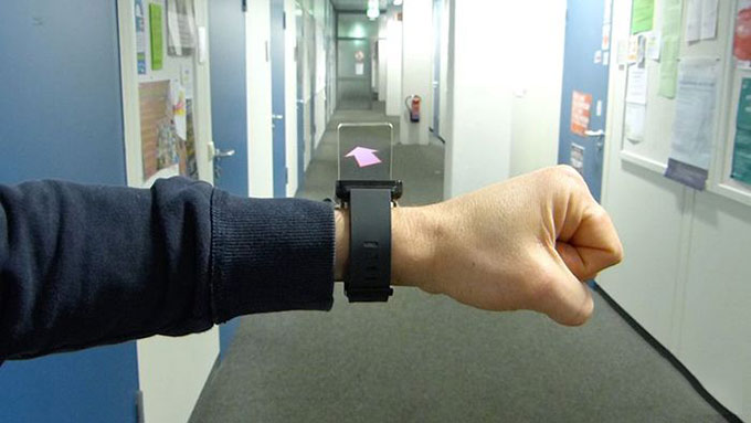 本次研發(fā)的WatchThru概念手表共有兩個版本,簡單版本就是在Android Wear手表的基礎(chǔ)上附加輔助屏幕。而更加復(fù)雜的版本則使用了外部追蹤相機和傳感器來持續(xù)追蹤手表的位置,佩戴者的屏幕圖標(biāo)并疊加到現(xiàn)實生活的設(shè)備上。而且未來團隊希望能夠?qū)⑦@個附加屏幕添加折疊功能,從而在不使用的時候附加在主屏幕上。
