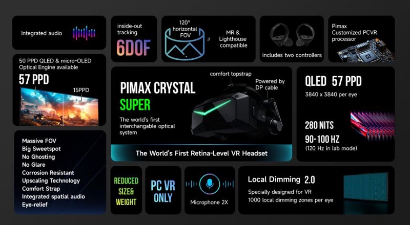 Pimax Crystal Super關(guān)鍵數(shù)據(jù)一覽: