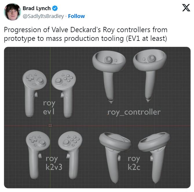 Valve Deckard“Roy”手柄模型在SteamVR驅(qū)動文件中被發(fā)現(xiàn),揭示了其設計和輸入。