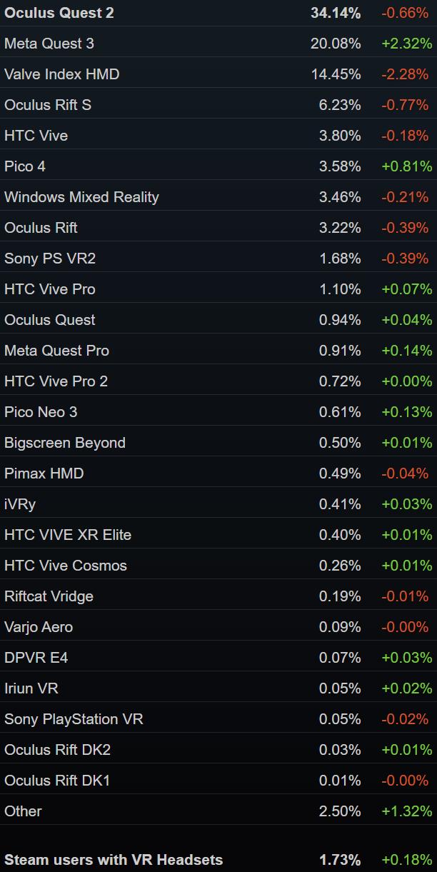 過去,在新頭顯發(fā)布后,我們曾多次看到“其他”類別出現(xiàn)異常增長。每次,Valve都會在幾天內或在下個月的數(shù)據(jù)中添加一個新類別,但這不包括Quest 3S Virtual Desktop用戶,用戶頭顯使用仍將被視為“Quest 3”。