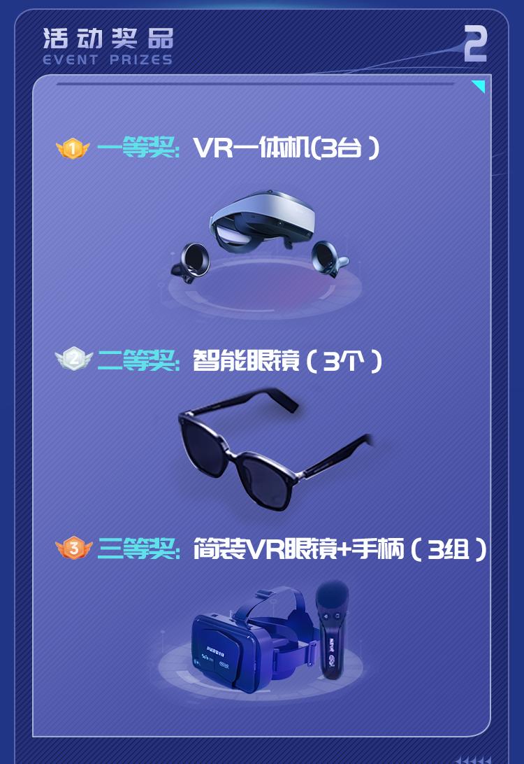 本次活動將設(shè)有3V3大空間體驗;PC-VR體驗。在校師生們可以通過3V3競技對抗感受科技體育的魅力,沉浸式體驗VR的的世界。參與現(xiàn)場體驗的師生不僅有機會獲得數(shù)據(jù)線、鼠標墊、U盤等實用禮品,獲勝隊伍更有機會贏取VR一體機、智能眼鏡等精美科技周邊產(chǎn)品。