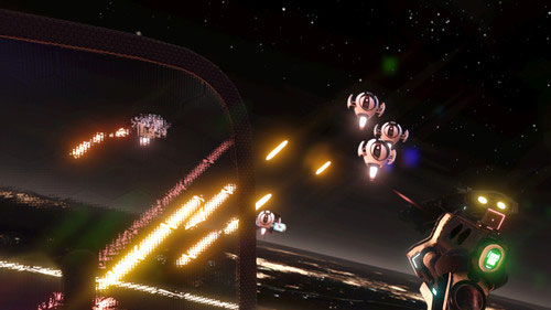 游戲中,玩家站在一個太空平臺,利用手中的槍和盾牌抵擋來自太空的敵人。敵人會分批進(jìn)攻,隨著游戲深入,敵人的數(shù)量也會增加。并且敵人將從平臺的周邊360度進(jìn)攻,所以玩家也就需要360度全面射擊,同時還要躲避敵人的子彈。這款游戲加入了動作識別系統(tǒng),在換盾牌時只要手柄伸到背后就會自動換成盾牌,就好像玩家已經(jīng)變成了一名戰(zhàn)士,背后背著的就是盾牌一樣。而這些設(shè)定也讓本作的代入感得到了很大的提升。