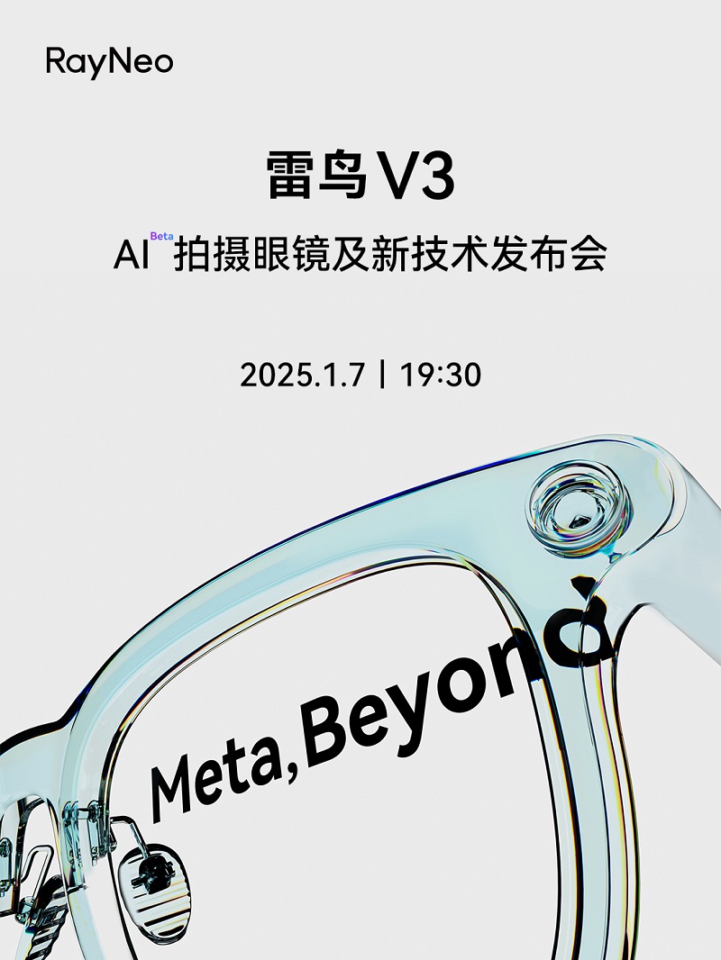 據(jù)悉,雷鳥創(chuàng)新將于今年1月7日 19:30 在CES 2025期間正式發(fā)布雷鳥V3,并展示雷鳥創(chuàng)新在AR光學領域的最近技術進展,前者用于布局當下,后者則用于綢繆未來。