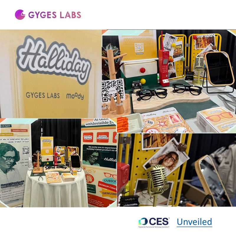 本次CES展上展出的具有隱形顯示的Halliday,是moody聯(lián)合Gyges Labs推出的AI產(chǎn)品。Gyges Labs是一家總部在新加坡,軟件和AI團(tuán)隊(duì)在美國(guó)的公司,硬件和供應(yīng)鏈方面,充分利用了中國(guó)優(yōu)勢(shì),是前沿穿戴式AI硬件方案的提供商。該公司于不久前剛完成數(shù)千萬(wàn)PreA輪的融資,也是朱嘯虎首個(gè)出手的AI硬件項(xiàng)目。