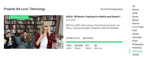 截止至3月11日,國(guó)內(nèi)一家VR交互公司——凌宇智控出品的全沉浸式VR交互產(chǎn)品NOLO,在海外Kickstarter眾籌平臺(tái)上以23萬(wàn)美元、1683名支持者的成績(jī)畫(huà)上句號(hào)。據(jù)了解,NOLO眾籌上線后,不僅被選為Project We Love和Project of the Day,且僅用8小時(shí)就籌滿了目標(biāo)金額。