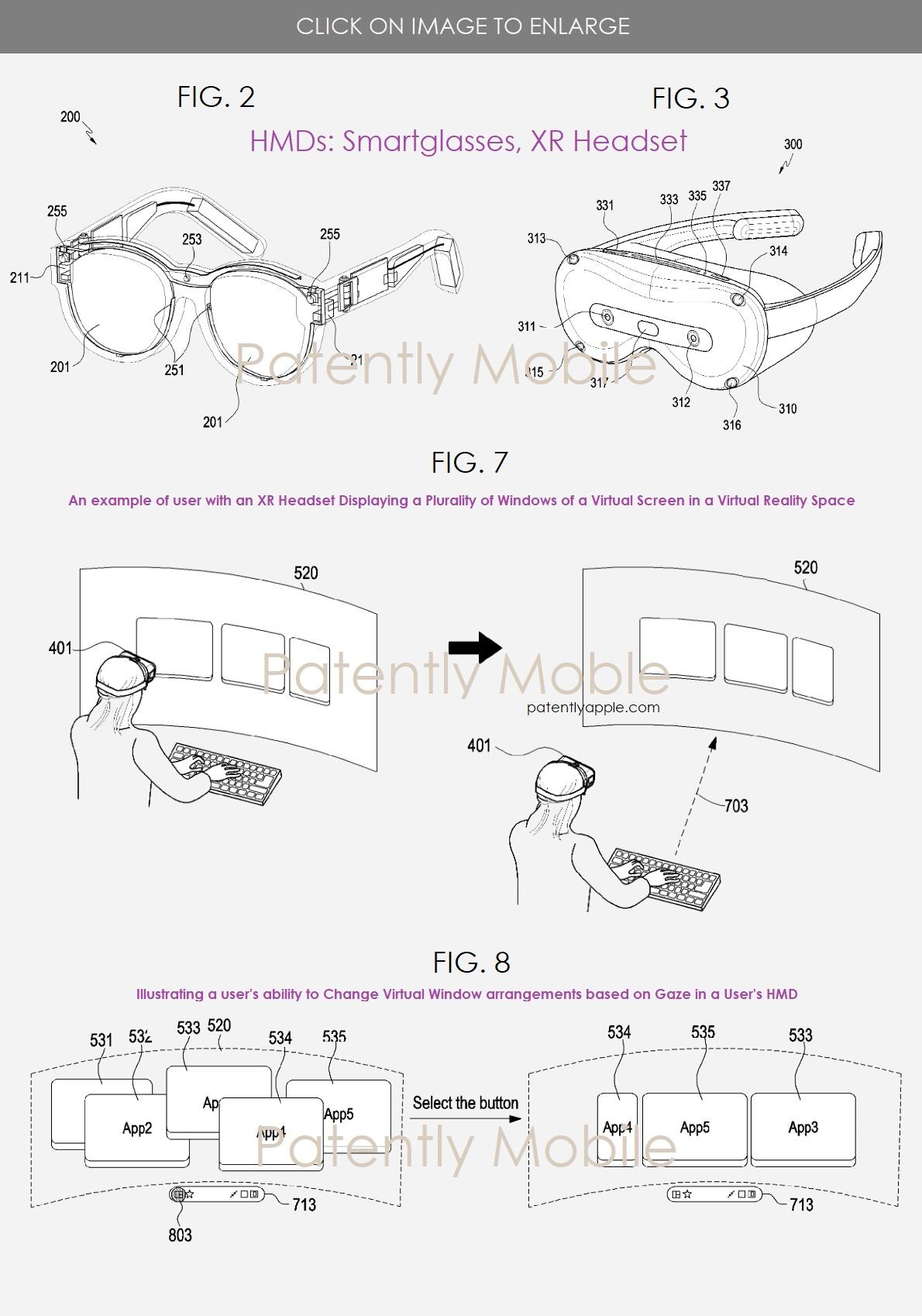 從三星專利圖2和圖3中可以直觀看出,該發(fā)明同時涉及智能眼鏡和XR頭戴式設(shè)備。在三星專利圖7里,當(dāng)顯示虛擬屏幕#520時,處理器能夠改變(或調(diào)整)虛擬屏幕的大小、距離或類型中的至少一項(xiàng)。根據(jù)一個實(shí)施例,處理器可以直接依據(jù)虛擬屏幕的某一部分(比如一個角落)來調(diào)整(如擴(kuò)大或縮?。┨摂M屏幕的尺寸。此外,處理器還能通過用戶界面(UI)選擇指定的放大倍數(shù)(如1.5X AY、2.0X AY和3.0X AY)來實(shí)現(xiàn)虛擬屏幕大小的調(diào)整。