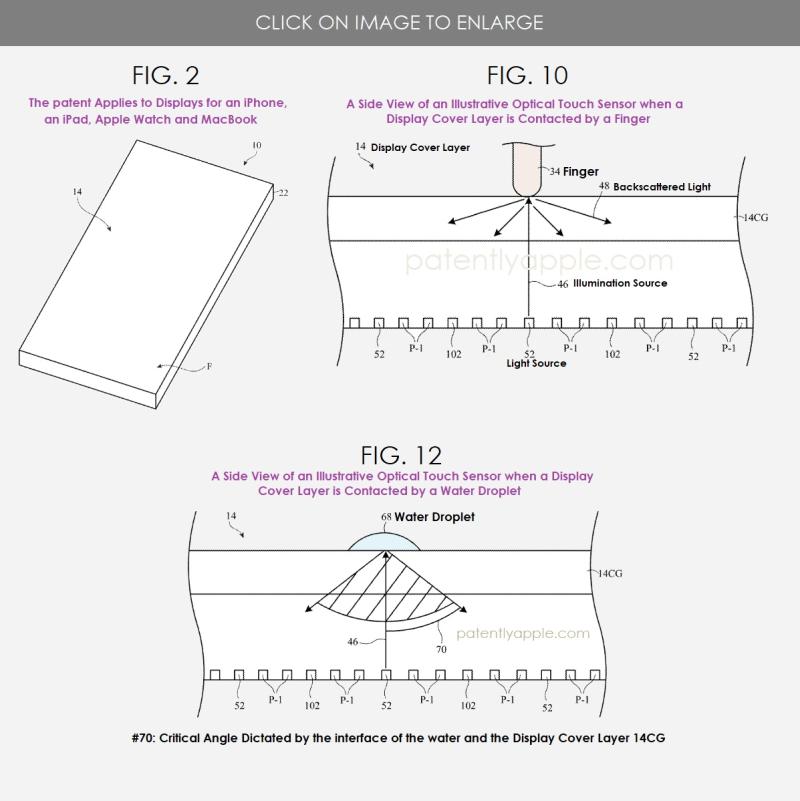 電子設(shè)備所配備的觸摸式顯示屏,有可能對水分的存在并不敏感。該顯示屏或許搭載有二維光學(xué)觸摸傳感器,比如直接照明光學(xué)觸摸傳感器或者全內(nèi)反射觸摸傳感器。這些光學(xué)觸摸傳感器不僅能夠在常規(guī)良性條件下(即無水或其他水分干擾的環(huán)境)收集觸摸輸入信號,而且在電子設(shè)備浸入水中,或者以其他形式暴露于水分環(huán)境時,依然能夠正常收集觸摸輸入。