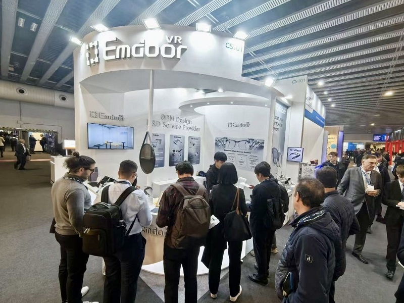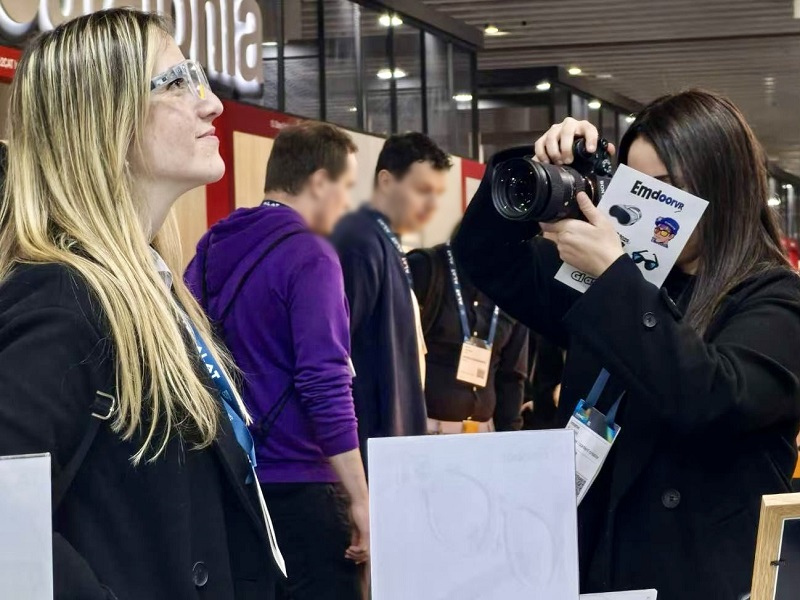 開展首日,億境虛擬的AI眼鏡方案便吸引了眾多參會者的關注與問詢,展現(xiàn)出其在此次展會中的突出吸引力。眾多專業(yè)觀眾紛紛駐足,親身體驗AI智能眼鏡的便捷操作與智能交互功能,同時感受XR一體機所帶來的沉浸式體驗?,F(xiàn)場工作人員以專業(yè)的素養(yǎng)和熱情的態(tài)度,為觀眾們進行了詳細的講解與演示。互動體驗區(qū)持續(xù)保持著較高的人氣,觀眾反饋積極正面,充分體現(xiàn)了市場對億境虛擬產品的認可與期待。