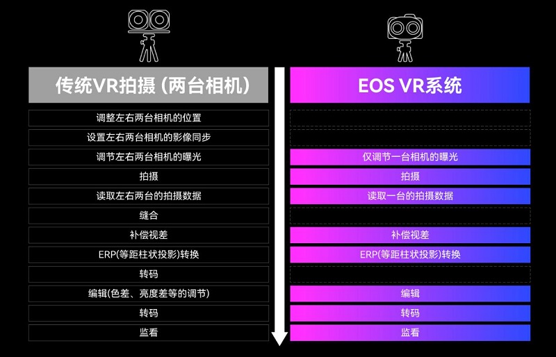 與傳統(tǒng)的“雙鏡頭+雙機(jī)身”拼接型3D VR解決?案相?,佳能EOS VR SYSTEM具備了多個層面的創(chuàng)新。