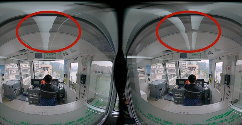 在重慶2號線貼近車頭的玻璃前,《超夢重慶》團(tuán)隊完成了傳統(tǒng)VR設(shè)備不敢想象的拍攝——因為這塊玻璃上有大量的反光,即使是毫秒級的誤差可能也會導(dǎo)致畫面呈現(xiàn)力的下降。當(dāng)傳統(tǒng)方案還在為兩臺攝影機(jī)的同步性焦頭爛額時,EOS VR SYSTEM以單機(jī)身驅(qū)動雙魚眼單鏡頭的顛覆性架構(gòu)讓左右眼畫面不再存在時間誤差,同時省去了費時費力的時間軸對齊和圖像縫合的過程,能夠幫助拍攝團(tuán)隊大幅度的節(jié)約人力成本和時間成本。