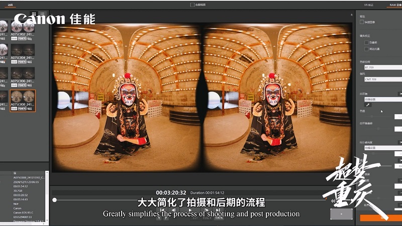 在《超夢重慶》的制作幕后花絮中,導(dǎo)演黃翱還揭示了佳能EOS VR SYSTEM的另一大重要優(yōu)勢:通過EOS VR Utility軟件實現(xiàn)的快速監(jiān)看。以往的VR 180視頻拍攝往往需要經(jīng)過縫合、轉(zhuǎn)碼等漫長的后期流程后才能看到成片,而通過EOS VR Utility可以直接在電腦上將拍攝的雙魚眼視頻導(dǎo)出為等距直方圖視頻,并直接在VR頭顯中觀看,大大提高了影片的制作效率。