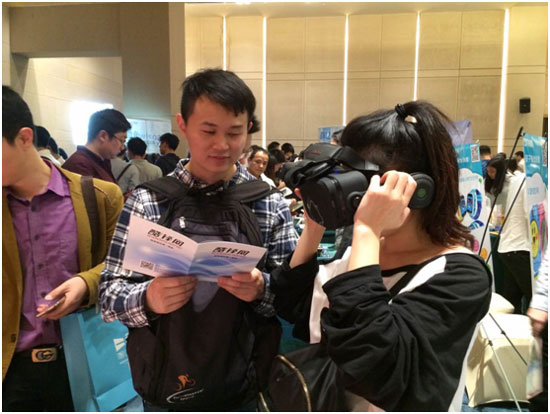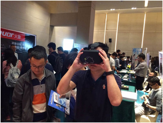 在此次主題會上,最為搶眼的要數(shù)VR科技了,此上圖為用戶體驗(yàn)者佩戴小宅VR研發(fā)的一款VR一體機(jī),你知道他們現(xiàn)在正在干什么嗎?