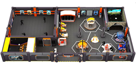 行走、跑、蹲、跳、尖叫、射擊或躲避僵尸……全套設(shè)備系列攝像頭精準定位且跟蹤肢體和手槍,頭盔和眼鏡將虛擬場景向你映射呈現(xiàn),支持多人同時對戰(zhàn),刺激互動令人樂此不疲。