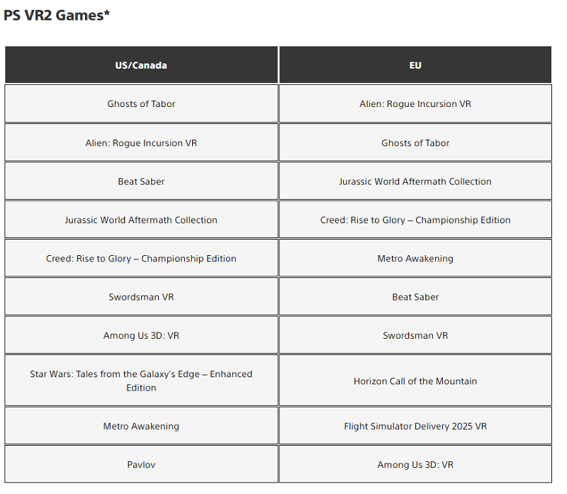 需要注意的是,索尼的下載排行榜會(huì)自動(dòng)排除支持可選PS VR2的游戲,所以大家不會(huì)在這里看到《午夜漫步》(Midnight Scenes)。除了《塔博爾的幽靈》,上個(gè)月新發(fā)布的PS VR2游戲,如《達(dá)芬奇之家VR》(The House of Da Vinci VR)、《華爾街奇觀》(Wall Street Spectacle)、《Smash Drums》以及《海盜VR:?jiǎn)汤_杰》(Pirates VR: Jolly Roger),均未登上這兩個(gè)地區(qū)的排行榜。?