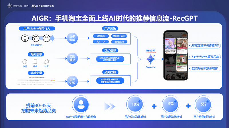 淘天集團在其“硬核少年技術(shù)節(jié)4.0”上宣布,其自研的百億參數(shù)推薦大模型RecGPT正式上線,手機淘寶首頁“猜你喜歡”信息流將基于AIGR(生成式推薦)技術(shù)全面升級,從用戶視角出發(fā),生成更精準貼合用戶需求的個性化推薦序列。?