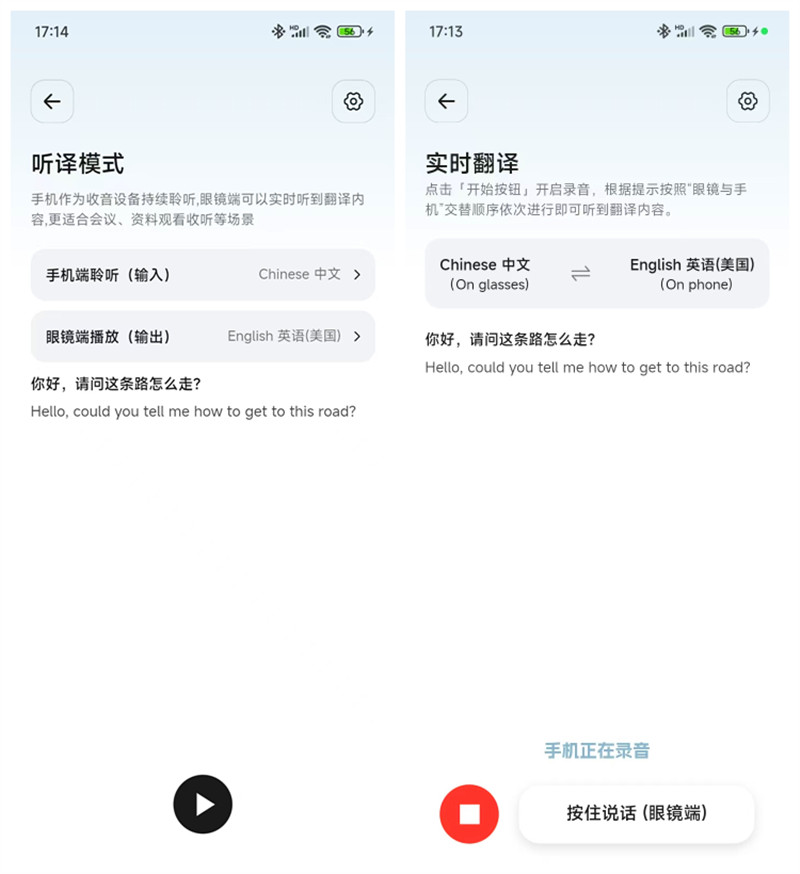 在實(shí)時(shí)翻譯和聽譯模式方面,李未可City AI眼鏡同樣表現(xiàn)出色。無(wú)論是實(shí)時(shí)翻譯以手機(jī)揚(yáng)聲器外放內(nèi)容,還是聽譯模式通過眼鏡揚(yáng)聲器輸出轉(zhuǎn)譯內(nèi)容,都能給出一致且準(zhǔn)確的答案,為用戶提供無(wú)縫的語(yǔ)言溝通體驗(yàn)。?