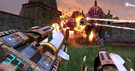 當(dāng)然如果你確實不了解這款游戲也沒關(guān)系。簡單來說,《英雄薩姆》最大的特色就是拿著超大超酷炫的武器去干掉更大更酷炫的怪獸。在宏大的場景設(shè)定下,玩家將盡情地把怒火傾瀉在敵人身上,通過各種子彈和火箭炮把目標(biāo)直接轟成渣。而對于VR版本的游戲來說,玩家既可以使用經(jīng)典的傳送運動機制,或者能夠hold得住的話—使用模擬手柄以及定位控制器來實現(xiàn)游戲中里的直接移動。盡管嚴格意義來說這其實是一款十多年前經(jīng)典游戲的再創(chuàng)作,但在VR技術(shù)的幫助下《英雄薩姆》顯然又一次喚來了新生。