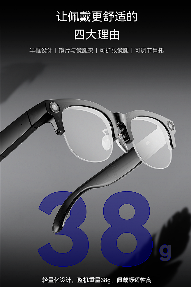 天翼AI眼鏡是一款搭載星辰智能體的智能穿戴設(shè)備,配備大廣角高像素攝像頭,能夠支持用戶方便快捷地進行第一視角拍攝。同時內(nèi)置的麥克風(fēng)與拾音器支持自然語音交互,能夠與百科全書式的AI語音助手隨時互動。另外,其隨身開放式耳機設(shè)計讓電話隨時接、音樂隨心聽。多模態(tài)識別功能更能幫助用戶進一步感知和理解世界。